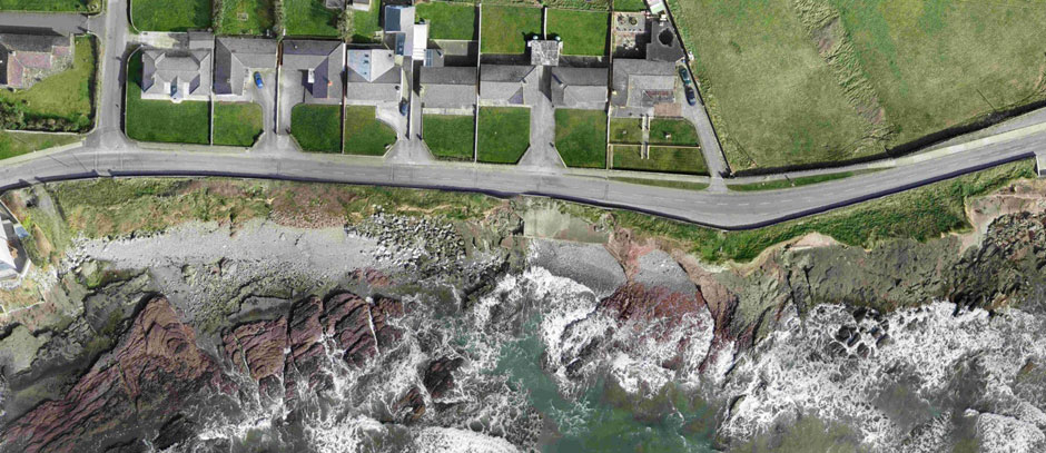 Coastal erosion is a truly dynamic Irish problem, mapping it can be difficult due to complicated topography and often dangerous, remote locations. Our services have been utilized by local authorities for mapping both hard and soft coastal terrain. Our high resolution aerial photographs can easily be compared to previous surveys to track erosion rates. The 3D topographic models allow volumes to be calculated and protection measures to be designed accurately. The reasonable costs in comparison to other survey methods allow cost effective continual monitoring.